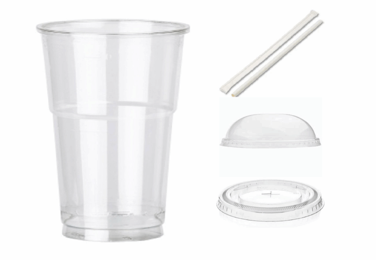12oz Cups for Smoothies & Shakes – with Dome Lid & Flat Lid, and 10mm Individually Wrapped Paper Straws Pack of 100