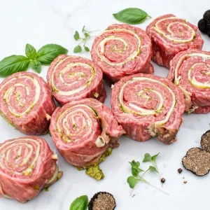 Halal Milk-Fed Veal Cheddar Steak Pinwheels Skewers (Brochettes)
