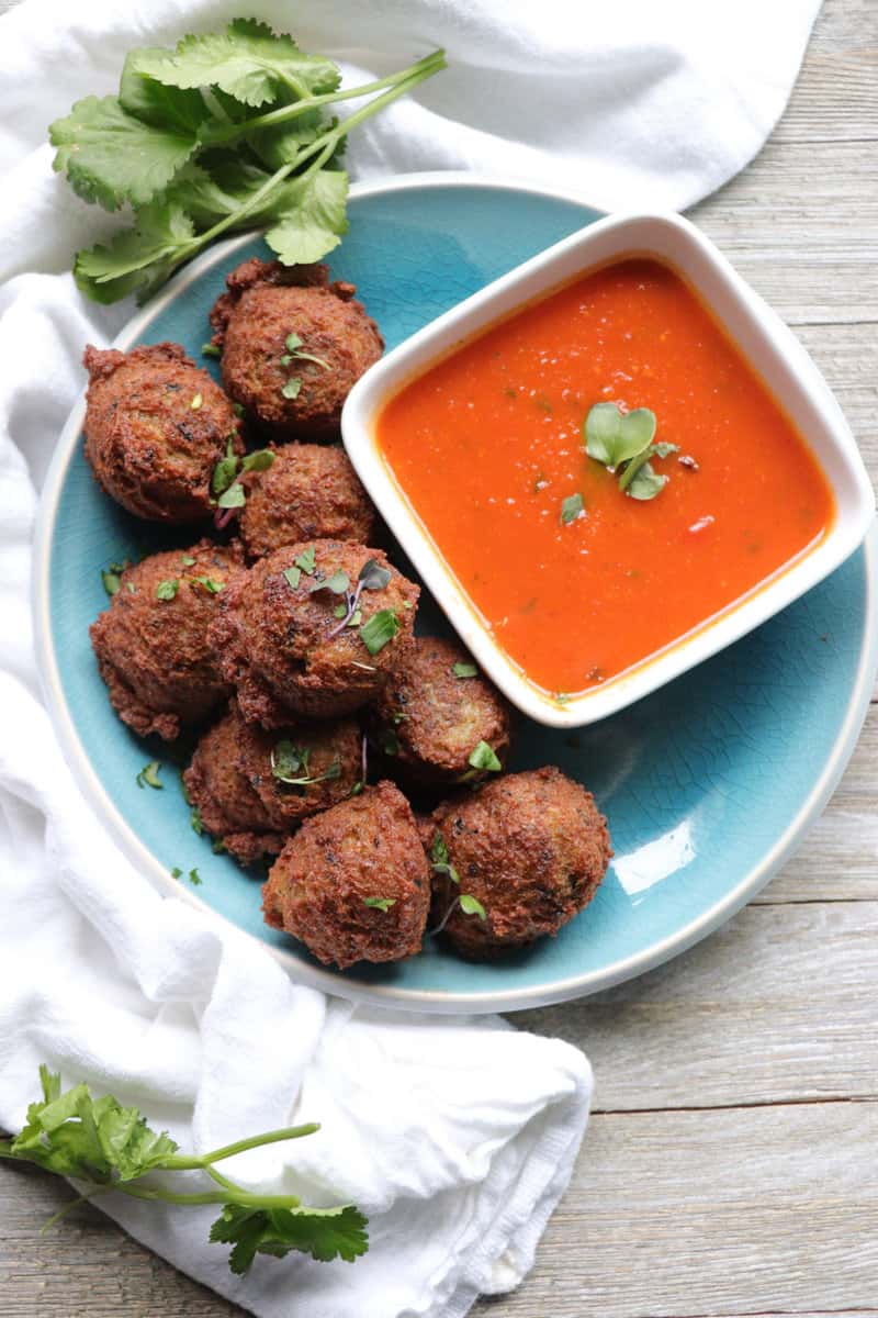 Bean fritters (peeled beans/cowpeas), onion, chilli, herbs/spices, salt, vegetable oil. Portion-controlled 120 g single serve for professional kitchen service. Allergens: See label/spec sheet.