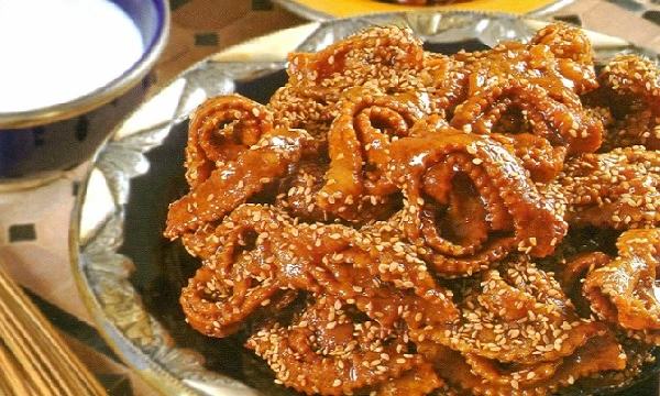 Traditional Algerian honey and sesame pastry twists; approx. 50g each.